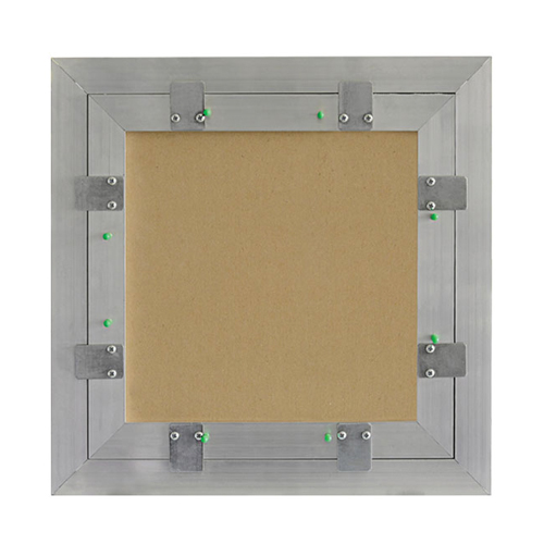 Caratteristiche • Lo spessore del profilo in alluminio può variare da 12,5 mm. a 15 mm. • Indicata per chiudere vani con poca profondità • Lastra di cartongesso Applicazioni • Per controsoffitti